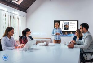 Équipes professionnelles, réactives et à l’écoute. Solutions de visioconférence adaptées, simples à utiliser et autonomes pour nos clients. Retour très positif : matériel ergonomique et polyvalent (visioconférence, affichage, travail collaboratif…).